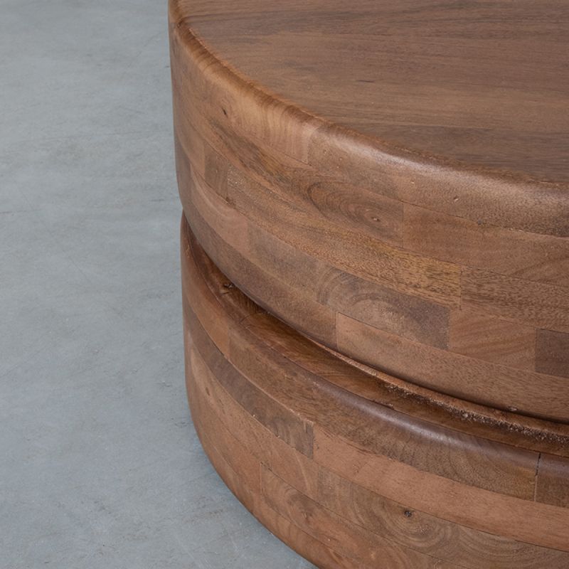 Gemaakt van Nature Smooth Mangohout, straalt deze ronde Salontafel luxe en warmte uit. De ronde vorm geeft de tafel een moderne uitstraling, terwijl de diepe espresso-tint een chique accent toevoegt aan je woonkamer.